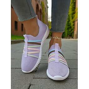 scarpe da corsa Flyknit viola da donna: scarpe sportive leggere e traspiranti per palestra, jogging, camminata e abbigliamento casual quotidiano