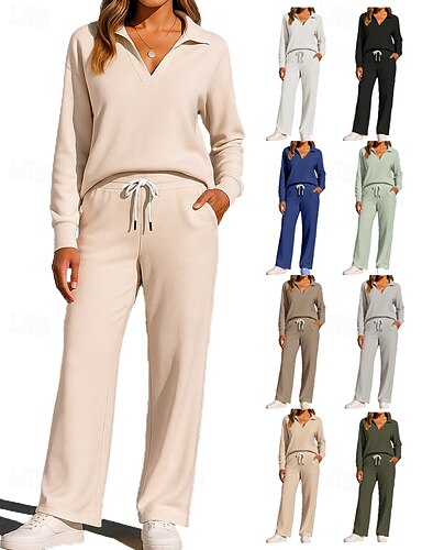 Per donna Maglia Tuta da Ginnastica Pantaloni da Tuta Coulisse Tasca Blocco di colori Giacca e Pantaloni da Tuta Set di Abbigliamento Sportivo Loungewear Estate Primavera Autunno Inverno Bianco
