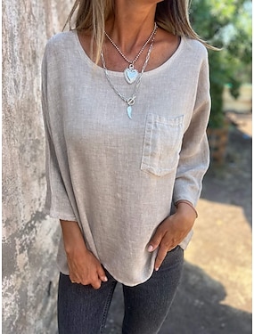 Per donna Maglietta Semplice Essenziale Moderno Manica 3/4 Girocollo Top Regolari Quotidiano Tasca Verde chiaro Cachi Beige Grigio Estate