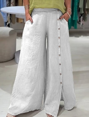 Per donna Finto cotone e lino Gamba larga Pantaloni Estivi Pantaloni Moda Streetwear Lunghezza intera Misura del girovita medio Semplice Bottone laterale Traspirabilità Confortevole Streetwear