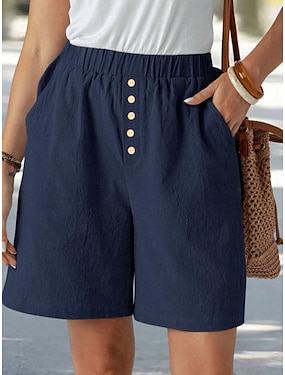 Per donna Pantaloni capri Finto cotone e lino Pantaloncini Estivi Shorts da Spiaggia Vacanza Essenziale Casual Lunghezza al polpaccio Vita Alta Semplice Coulisse Tasca Comodità All'aperto