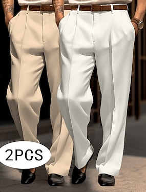 Per uomo Pantaloni Pantaloni Eleganti Pantaloni da Abito Tasca Frontale Gamba Dritta Confezione multipla Semplice Comodità Lunghezza intera Matrimonio Feste Affari Moda Chic & Moderno Bianco + kaki