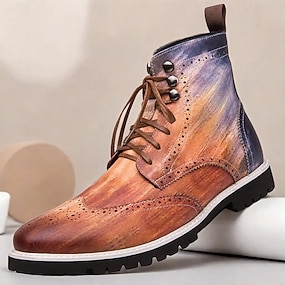 stivaletti brogue dipinti a mano da uomo con design allacciato, tomaia in similpelle e suola robusta: eleganti calzature casual vintage