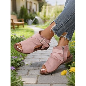 sandali da donna in finta pelle scamosciata con punta aperta e cerniera posteriore – stile casual chic, vestibilità morbida e comoda per passeggiate, viaggi, weekend, giardino e uso quotidiano