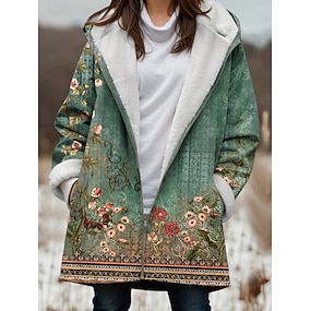 Per donna Giacca Invernale Giacca in Pile Caldo Leggero Stampato Foderato in pile Vintage Quotidiano Boho Vintage Floreale Vacanza Casuale Corto Con Cappuccio Vestibilità regolare Manica Lunga