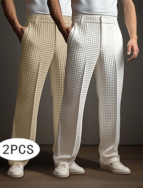 Per uomo Pantaloni Eleganti Pantaloni Chinos Pantaloni a Nido d'Ape Tasca Bottoni Jacquard Semplice Comodità Formale Feste Lavoro Moda Stile Classico Nero Bianco Micro-elastico