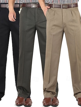 Per uomo Laurea Pantaloni Eleganti Pantaloni Chinos Pantaloni plissettati Tasca Gamba Dritta Semplice Comodità Formale Feste Lavoro Moda Stile Classico Nero Cachi Micro-elastico