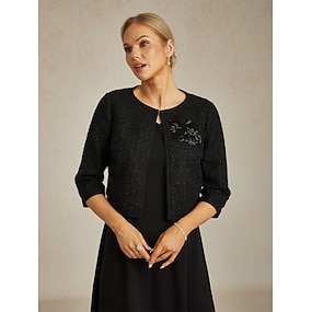 Per donna Giacca Trench Caldo Con perline Elegante Formale Feste Ospite di nozze Lavoro Corto Girocollo Vestibilità regolare Manica Lunga Capispalla Nero Primavera Autunno