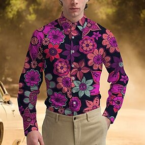Retrò Vintage Anni '70 Camicia Camicia Aloha Hippie Floreale Costume Per uomo Mascherata Feste Abbigliamento quotidiano Parata dell'Orgoglio Adulti Camicia