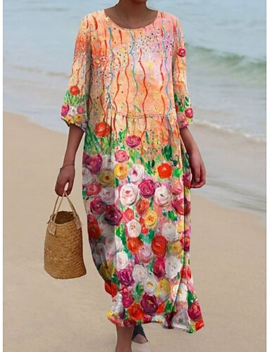 Per donna Vestito maxi Abito casual Moda Informale Da mare Giornaliero Standard Floreale Manica a 3/4 Girocollo Bianco Giallo Rosso Estate Primavera