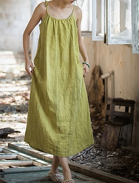 Per donna Abito Midi Abiti in cotone e lino Abito a Tubino Vestito Estivo Abito Sottoveste Vintage Moda Quotidiano All'aperto Vacanza Vestibilità comoda Semplice Senza Maniche Spalline Blu Verde