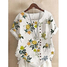 Per donna Camicia Blusa Finto cotone e lino Stampato Floreale Casual Manica Corta Girocollo Top Regolari Quotidiano Vacanza Blu Giallo Verde chiaro Blu Reale Viola Estate