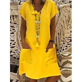 Per donna Abito al ginocchio Abito a trapezio Abito Estivo Casual Vestibilità regolare Semplice Manica Corta Scollo a V Blu Bianco Giallo Rosa Estate Primavera