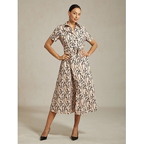 Abito chemisier in raso setoso con stampa paisley in stile boho