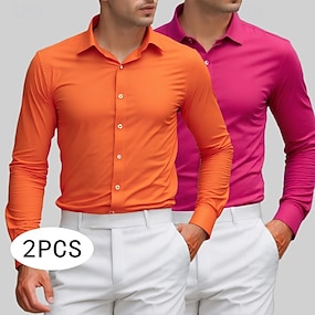 Per uomo Camicia Camicia elegante Camicie da Smoking Colore Solido / Tinta Unita Ufficio & Carriera Abbigliamento quotidiano Rosa + arancio Verde + arancio Rosa + verde Manica Lunga Colletto a Camicia