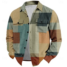Per uomo A quadri Geometrica Camicia di velluto a coste Giacca da camicia Sovracamicia Manica lunga Vintage Informale Esterno Da giorno Autunno inverno Collo ripiegabile Camicie con colletto Bottoni