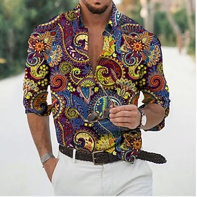 Per uomo Paisley Tribale Camicia Manica Lunga Vintage Moda Cool Streetwear Quotidiano Ferie Primavera & Autunno Colletto Giallo Verde militare Rosso Verde