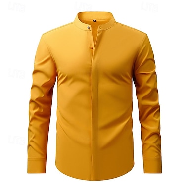 Per uomo Camicia Camicia elegante Camicia non stiro Camicia con colletto alla coreana Semplice Affari Quotidiano Nero Bianco Giallo Vino Manica Lunga Collo alla coreana Estate Primavera Abbigliamento