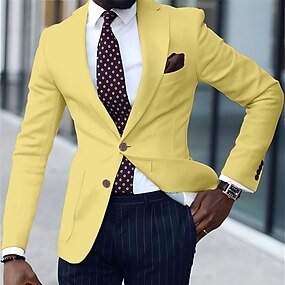 Per uomo Blazer Affari Cocktail party Ricevimento di matrimonio Moda Casual Primavera Autunno Poliestere Semplice Tasca Bottoni Confortevole Monopetto Giacca Giallo Verde chiaro Blu marino Marrone