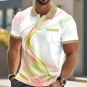 Per uomo Polo con bottoni Streetwear Casuale Bavero Manica Corta Moda Geometrico Linea Bottoni Tasca Estate Giallo Rosso Blu Verde Polo con bottoni
