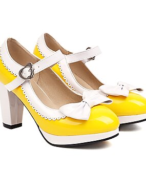 Per donna Tacchi Stiletto Scarpe da sera Mary Jane Taglie forti Casual Giornaliero Tinta unica Tinta unita Fibbia Quadrato Vintage Retrò Informale Footing Cuoio PU Con cinturino a T Nero Giallo Rosso