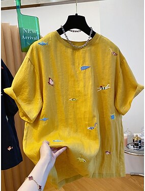 Per donna Camicia Blusa Finto cotone e lino Ricamato Stampato Floreale Vintage Elegante Mezza Manica Girocollo Top Regolari Quotidiano All'aperto Abbigliamento casual alla moda Bianco Giallo Rosa