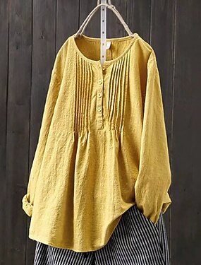 Per donna Blusa Finto cotone e lino Arricciato Bottoni Semplice Moderno Casual Manica Lunga Girocollo Top Regolari Quotidiano Uscire Bianco Giallo Rosa Blu marino Estate