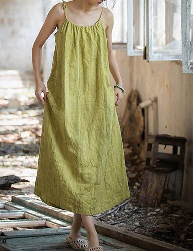 Per donna Abito Lungo Maxi Abito Abito maxi Finto cotone e lino Abito a Tubino Vestito Estivo Vestito Casual Moda All'aperto Feste Ferie Vestibilità regolare Semplice Manica Corta Spalline sottili