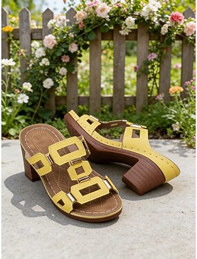 Sandali da donna gialli con stampa floreale – pantofole estive leggere a punta aperta, comode ballerine casual con dettaglio floreale per vacanze, spiaggia e giardino &abbigliamento quotidiano