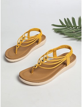 sandali da donna gialli con punta aperta e catena – comodi sandali casual per tutti i giorni, per il giardino e per i viaggi
