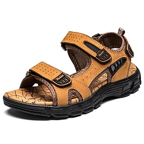 sandali da uomo in similpelle marrone chiaro con punta aperta, cinturini regolabili e suola comoda per le attività estive