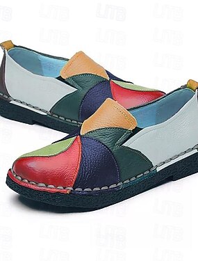 mocassini da donna in similpelle colorata patchwork | scarpe casual slip-on con design cucito a mano per l'uso quotidiano e il comfort