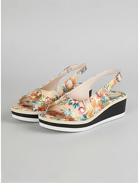 Sandali con zeppa floreale da donna, comode scarpe con plateau e cinturino posteriore per invitati a matrimoni in giardino, abbigliamento casual ed elegante per l'estate all'aperto.