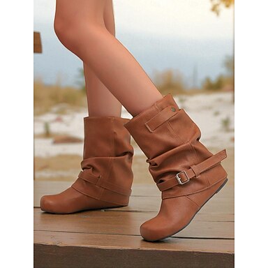 stivaletti da donna in similpelle marrone ispirati al medioevo - design con fibbia, comodo tacco a zeppa, calzature casual alla moda per feste retrò, autunno e inverno
