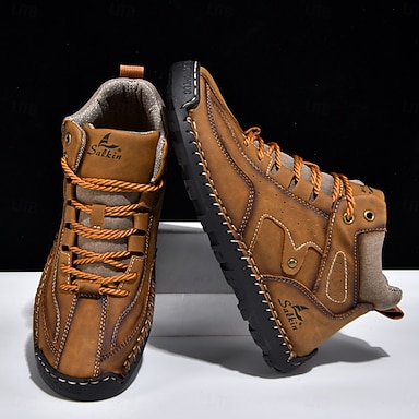 scarponi da trekking marroni da uomo: resistenti scarpe da ginnastica in similpelle con suola antiscivolo per avventure all'aria aperta e abbigliamento invernale
