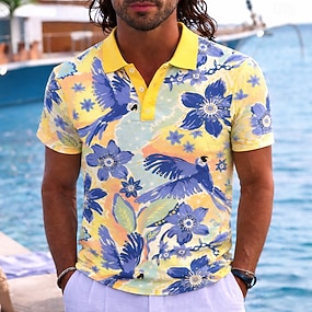 Per uomo Animale Polo Hawaiane Manica Corta Magliette polo Bavero Resort Athleisure Abbigliamento da vacanza Stampa 3D Bottoni Primavera & Estate Blu Giallo Rosa