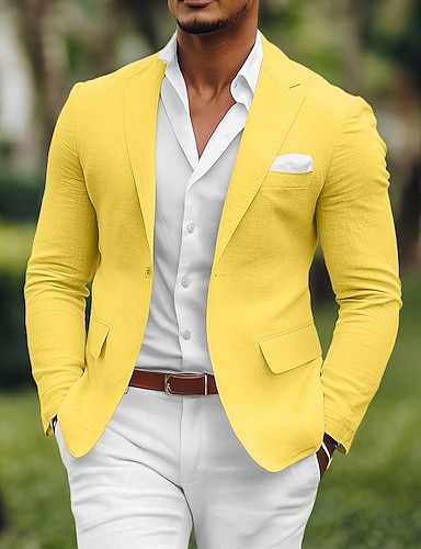 Per uomo Blazer di Lino Giacca Sportiva Colletto ad incastro Moda Casual Tinta unita Blazer Giallo Rosa Azzurro cielo Vestibilità standard Monopetto Un Bottone
