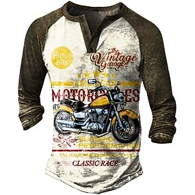Per uomo maglietta Camicia Henley Stampe astratte Moto Henley Giallo Blu Cachi Grigio Esterno Informale Manica lunga Bottone giù Stampa Abbigliamento Moda Leggero Vintage Traspirante