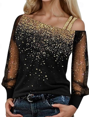 Per donna Blusa Patchwork Glitter Rete Semplice Elegante Moderno Manica Lunga Scollo a V Top Regolari Quotidiano Ferie Uscire Nero Estate Primavera Autunno