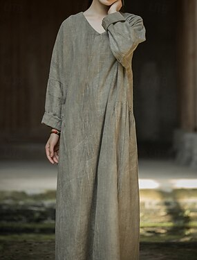 Per donna Abito Lungo Maxi Abito Abiti in cotone e lino Abito a Tubino Elegante Vintage Vacanza Ferie Uscire Vestibilità comoda Semplice Manica Lunga Scollo a V Arancione Verde Grigio Primavera