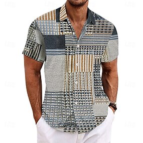 Per uomo Camicia camicia di lino camicie retrò Camicia d'epoca Camicia etnica Scozzese a quadri Esterno Interni Blu Kaki Grigio Manica corta Collo ripiegabile Estate Abbigliamento