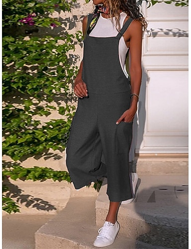 Per donna Normale Tuta Streetwear Tinta unica Senza maniche Squadrata Tasche Strada Giornaliero Standard Nero Vino Verde militare Estate