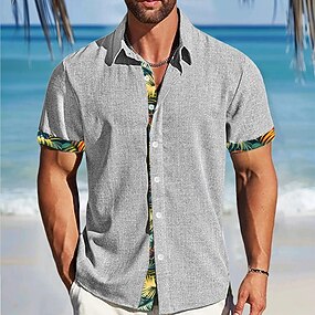 Per uomo Camicia camicia di lino Camicia da spiaggia Camicia hawaiana Albero di cocco Esterno Strada Nero Rosa Verde Grigio Maniche corte Collo ripiegabile Estate Primavera Abbigliamento Stampa