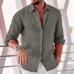 Per uomo camicia di lino Camicia estiva Abbigliamento mare Maglietta informale Camicia con bottoni Liscio Informale Giornaliero Nero Bianco Azzurro cielo Grigio Manica lunga Collare da campo