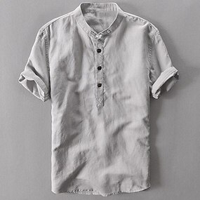 Per uomo Camicia con colletto a fascia Camicia popover Camicia estiva Abbigliamento mare Maglietta informale Liscio Esterno Per eventi Bianco Blu Verde Grigio Manica corta Henley Primavera estate