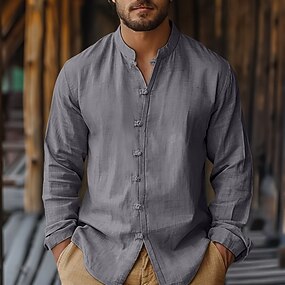 Per uomo Camicia Camicia di lino Camicia casual Camicia con Bottoni Camicia di cotone Semplice Vacanza Camicia hawaiana Nero Bianco Rosa Grigio Manica Lunga Bavero Primavera Autunno Abbigliamento