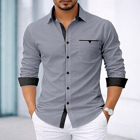 Per uomo Camicia Camicia elegante Camicia con Bottoni Tinta unica Quotidiano Affari Blu chiaro Nero Bianco Rosa Manica Lunga Collo ripiegato Tutte le stagioni Abbigliamento Patchwork