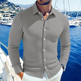 Per uomo Camicia Maglia a coste Camicia casual Camicia con colletto alla coreana Camicia con Bottoni Bianco Blu marino Grigio Azzurro Manica Lunga Semplice Colletto Casuale Quotidiano Abbigliamento