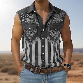 Per uomo Stampa Floreale Bandiera degli Stati Uniti Patriottico Camicia Western Camicia da cowboy Maglietta senza maniche Senza Maniche Stile Western All'aperto Lavoro Casual Estate Primavera Collo