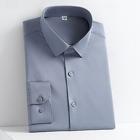 Per uomo Camicia elegante Camicia non stiro Camicia a righe Strisce e Quadri Matrimonio Ufficio & Carriera Nero Bianco Kaki Grigio chiaro Manica Lunga Collo ripiegato Tutte le stagioni Abbigliamento